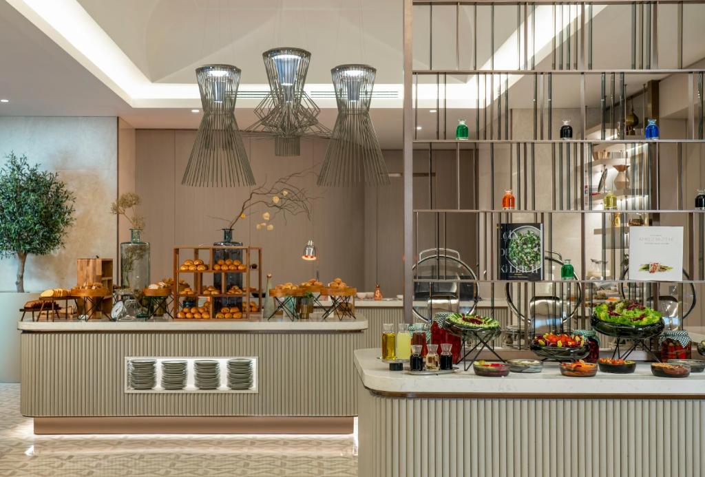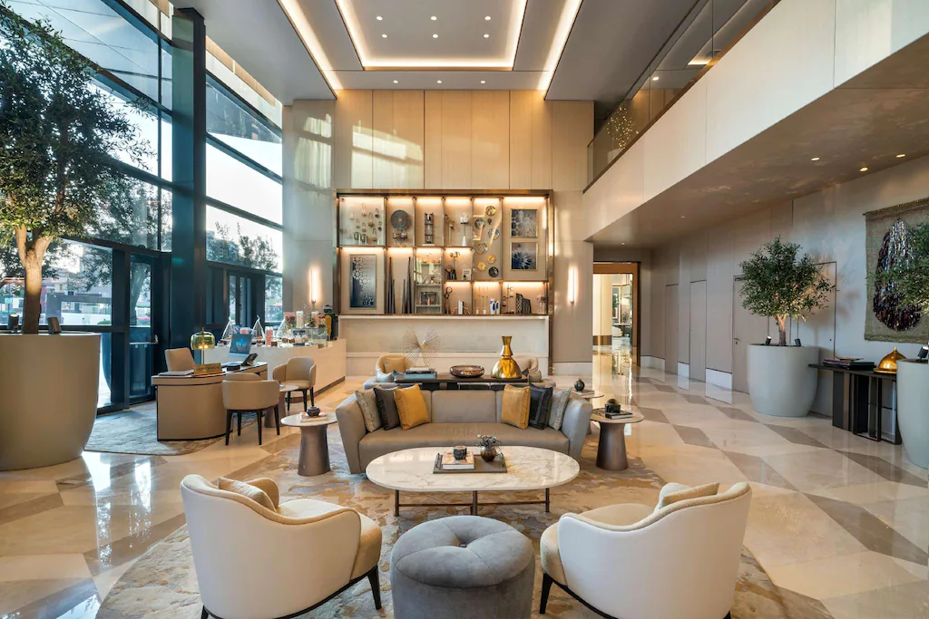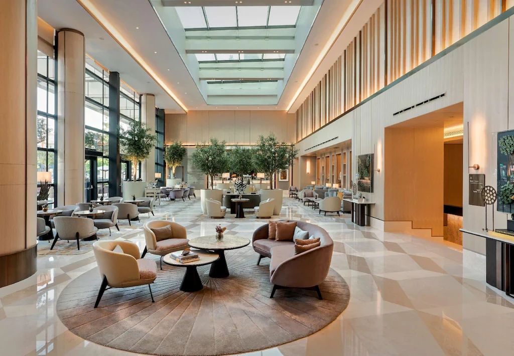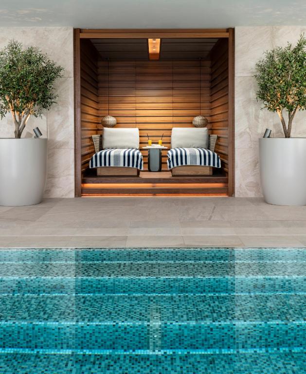 The hotel offers contemporary rooms and suites designed for a refined city stay. Wellness facilities include a full-service spa with treatment rooms, an authentic Turkish hammam, sauna and steam room, plus a heated indoor pool with panoramic city views.