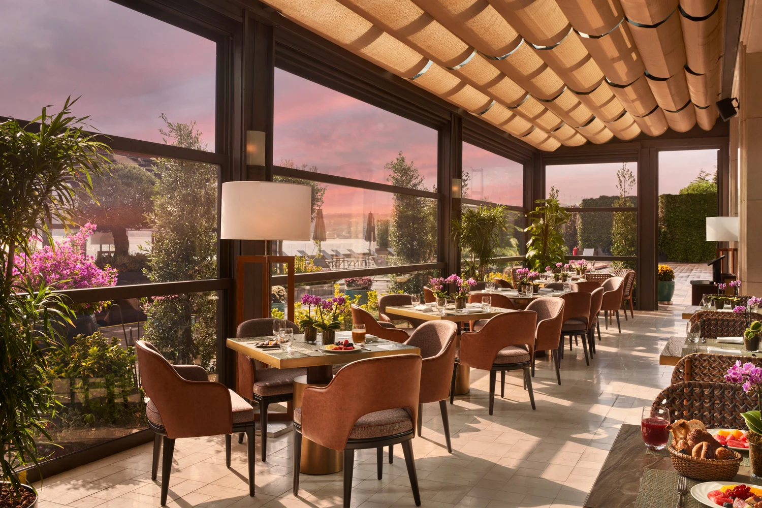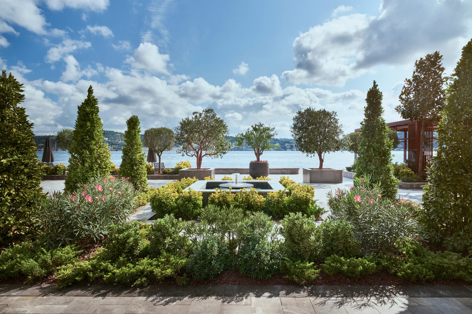 Swimming facilities include a seasonal 20-metre outdoor lap pool with Bosphorus views, a spacious indoor pool with natural daylight and garden access plus a hot bath, and a designated children’s pool.