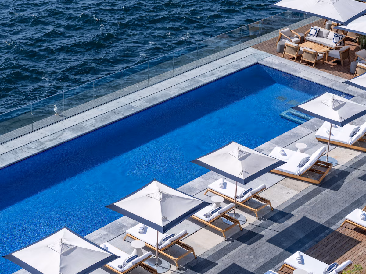 The guest experience balances heritage character with contemporary luxury: high-quality finishes, advanced in-room amenities and a comprehensive hospitality service. Signature outlets include the rooftop restaurant Gallada, serving Turk-Asian cuisine with exceptional views, and the sophisticated Topside Bar. For wellness and leisure, the hotel provides a full-service spa including a traditional Turkish hammam, a 24-hour fitness centre, and both elegant indoor and dramatic outdoor pools on the Bosphorus edge. Valet parking and high-speed Wi-Fi are available to ensure a seamless stay.